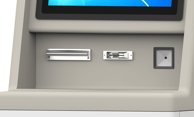 設(shè)備主要用于醫(yī)院自助報(bào)告打印,支持自助查詢、取單功能等,屏幕采用19寸電容屏,支持診療卡、社??ā⑸矸葑C識(shí)別,設(shè)備簡(jiǎn)單易操作